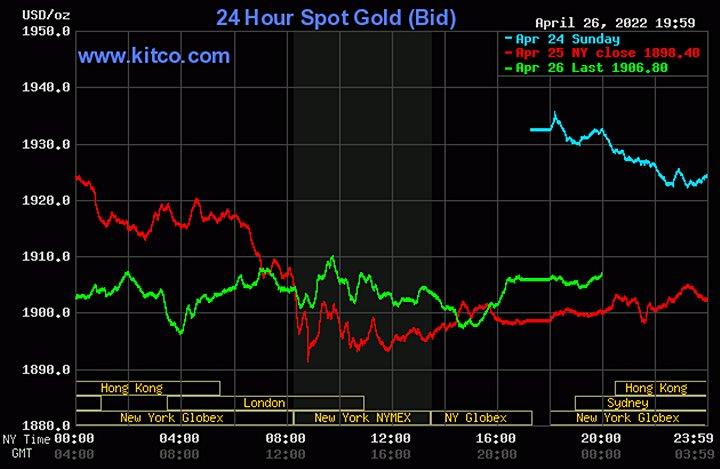 Giá vàng thế giới ngày 26/4, tính đến đầu giờ sáng (giờ Việt Nam) đang giao dịch quanh ngưỡng 1.899 USD/ounce - giảm 31 USD/ounce.