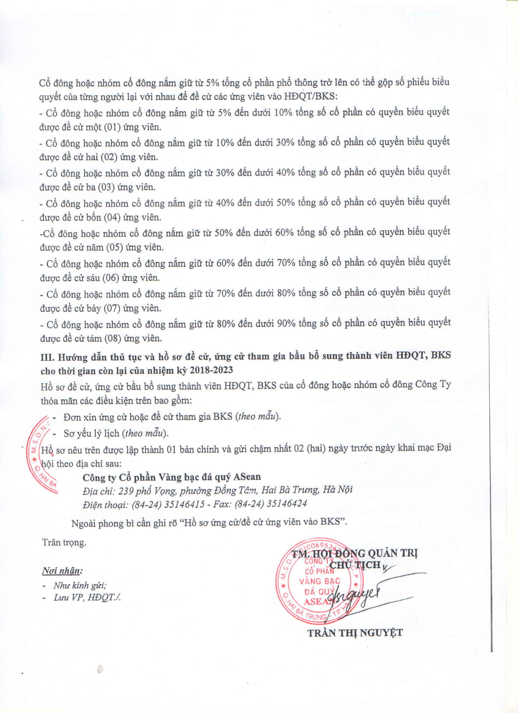 Thông báo lấy ý kiến cổ đông bằn văn bản về việc: Thông qua phương án tăng vốn điều lệ Công ty